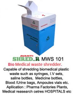 - Can Shred all items under RED category of Bio MEDICAL WASTE specified in guidelines of SWM2016 Act